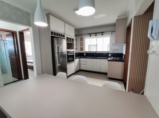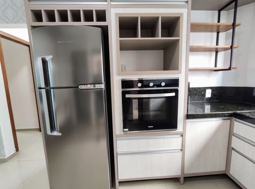 O imóvel é finamente decorado, com papel de parede sofisticado e pintura nova, criando um ambiente moderno e acolhedor. Com excelente padrão de acabamento, o apartamento é completamente mobiliado e pronto para morar, incluindo um banheiro totalmente equipado e uma sacada com churrasqueira, perfeita para momentos de lazer.